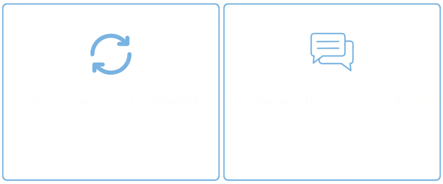 The focus is on process, care, and communication rather than promises.
